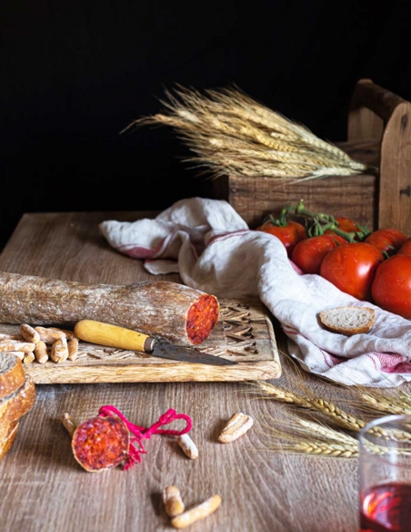 Consistencia firme y compacta, aspecto rugoso externo con buena adhesión de la tripa a la masa. El corte es homogéneo, ligado y sin coloraciones anormales, con diferencia neta entre los fragmentos de carne y grasa. Presenta un olor característico proporcionado por las especias, condimentos, aditivos y proceso de curación. Embutido en tripa natural de 60-65 mm de calibre