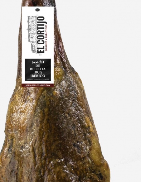 Salted meat made with the muscle mass and bones of the hind limb of Iberian pigs, outlined at its edges until the appearance of the muscle, preserving the bark and the hoof, which has undergone a suitable maturation-drying process. Classified according to the Quality Standard as Bellota 50% Iberian Ham.