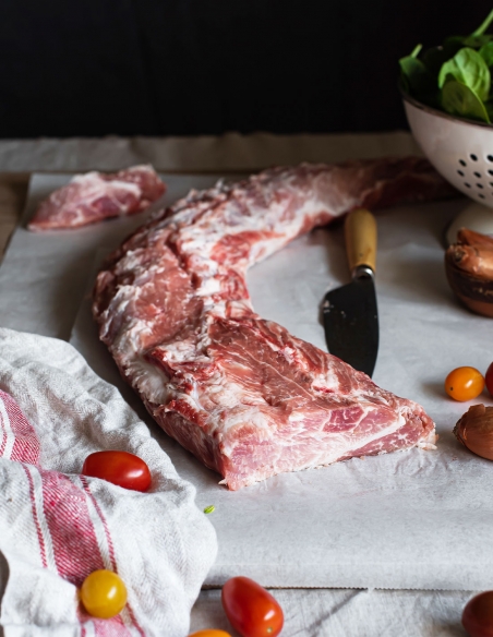 It is the piece that is attached to the scapula and forming part of the spine headboard. It is the most veined piece of intramuscular fat, considered one of the best cuts of meat of the Iberian pig.